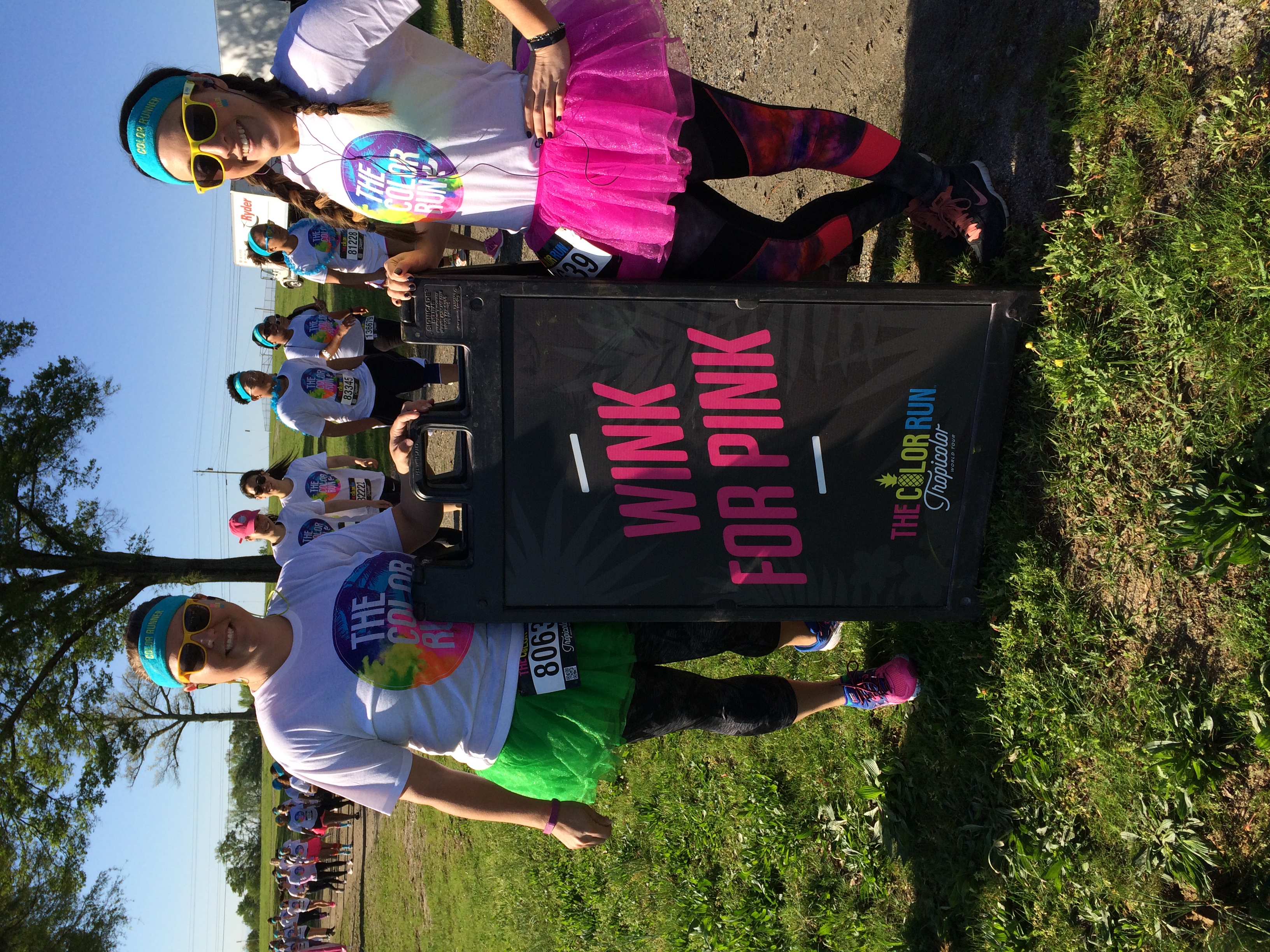 We headed up on Friday afternoon and it took a little longer then 7 hours due to traffic but we made it and got all ready for our big color explosion the next morning. We decided to get festive and wear tutu’s because why not? If we’re going there to get colorful why not start with a little color of our own. Our Packets for the run included headbands, a t-shirt, very shiny temporary tattoos, and our own little color packets to throw at the end at the Color Party.