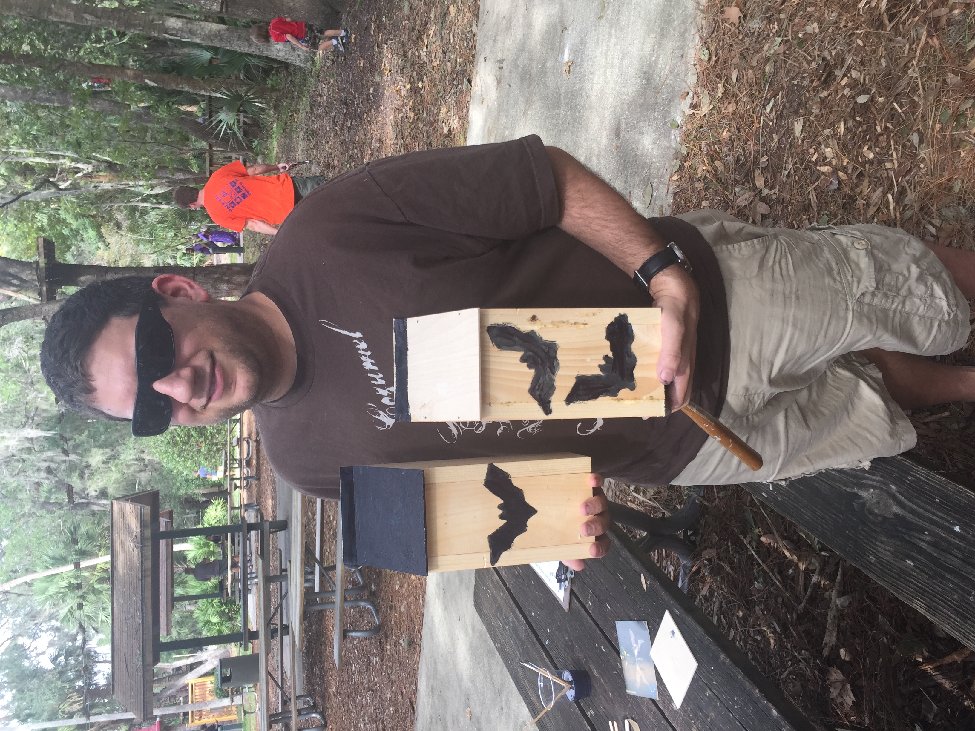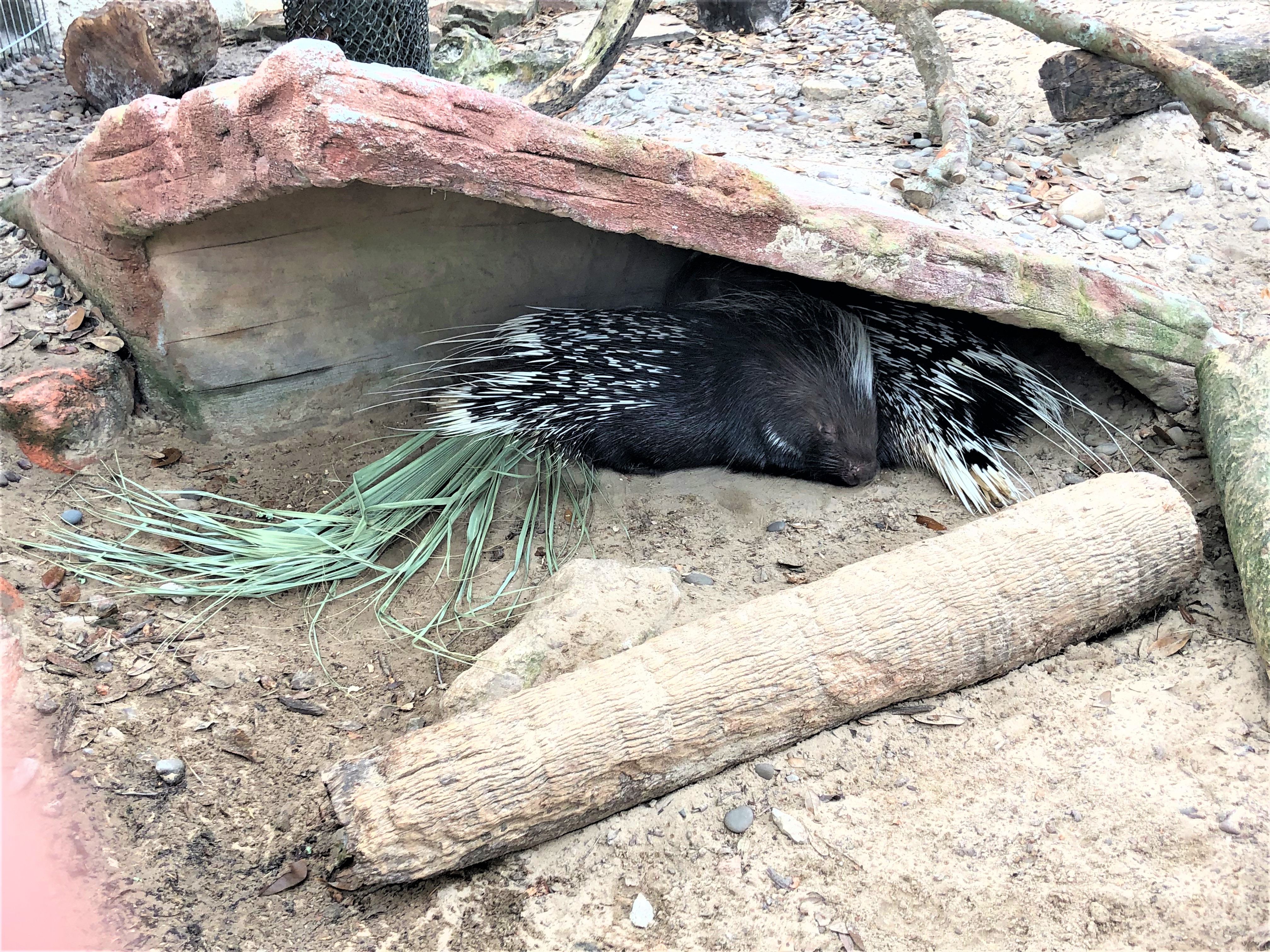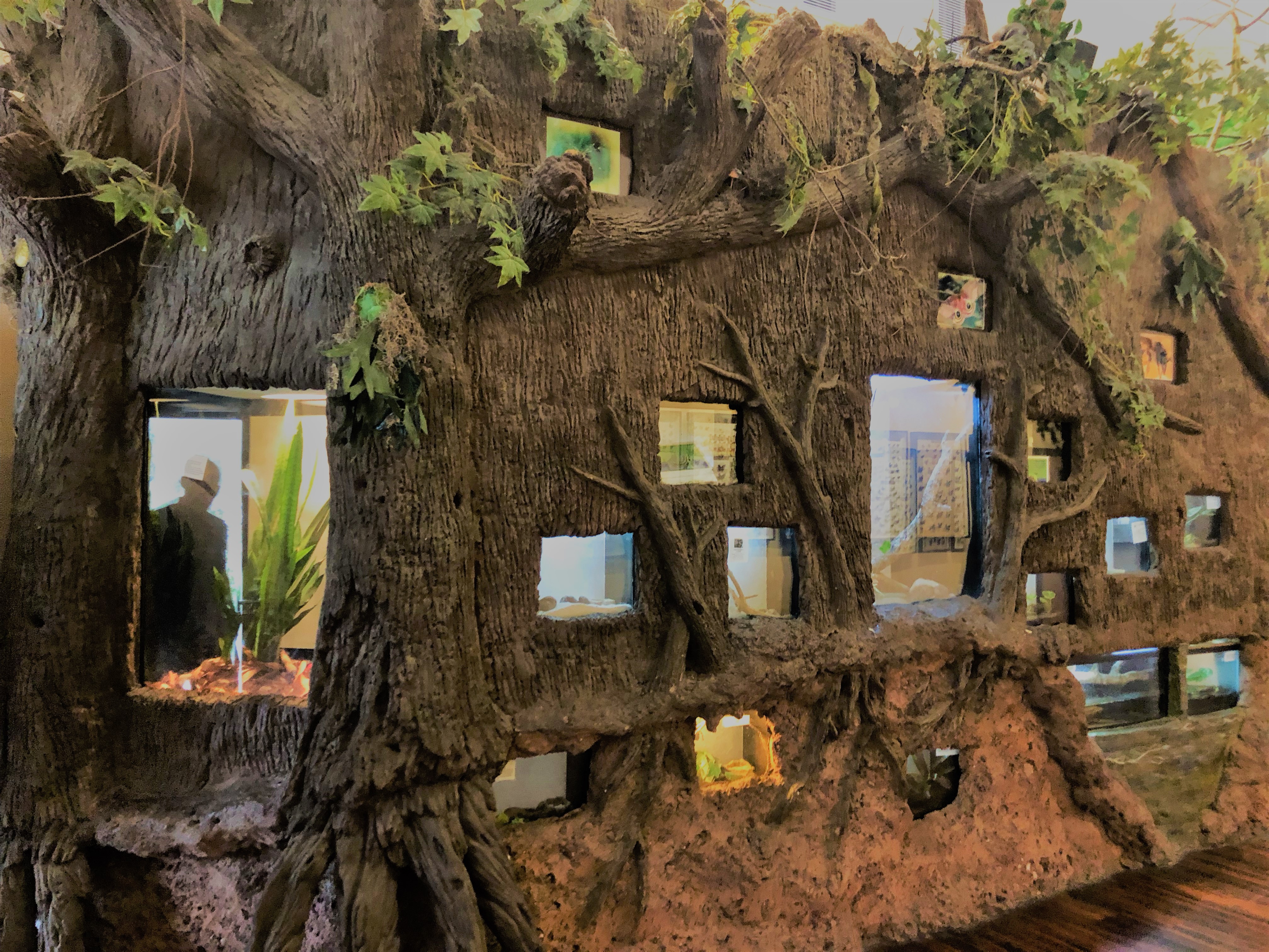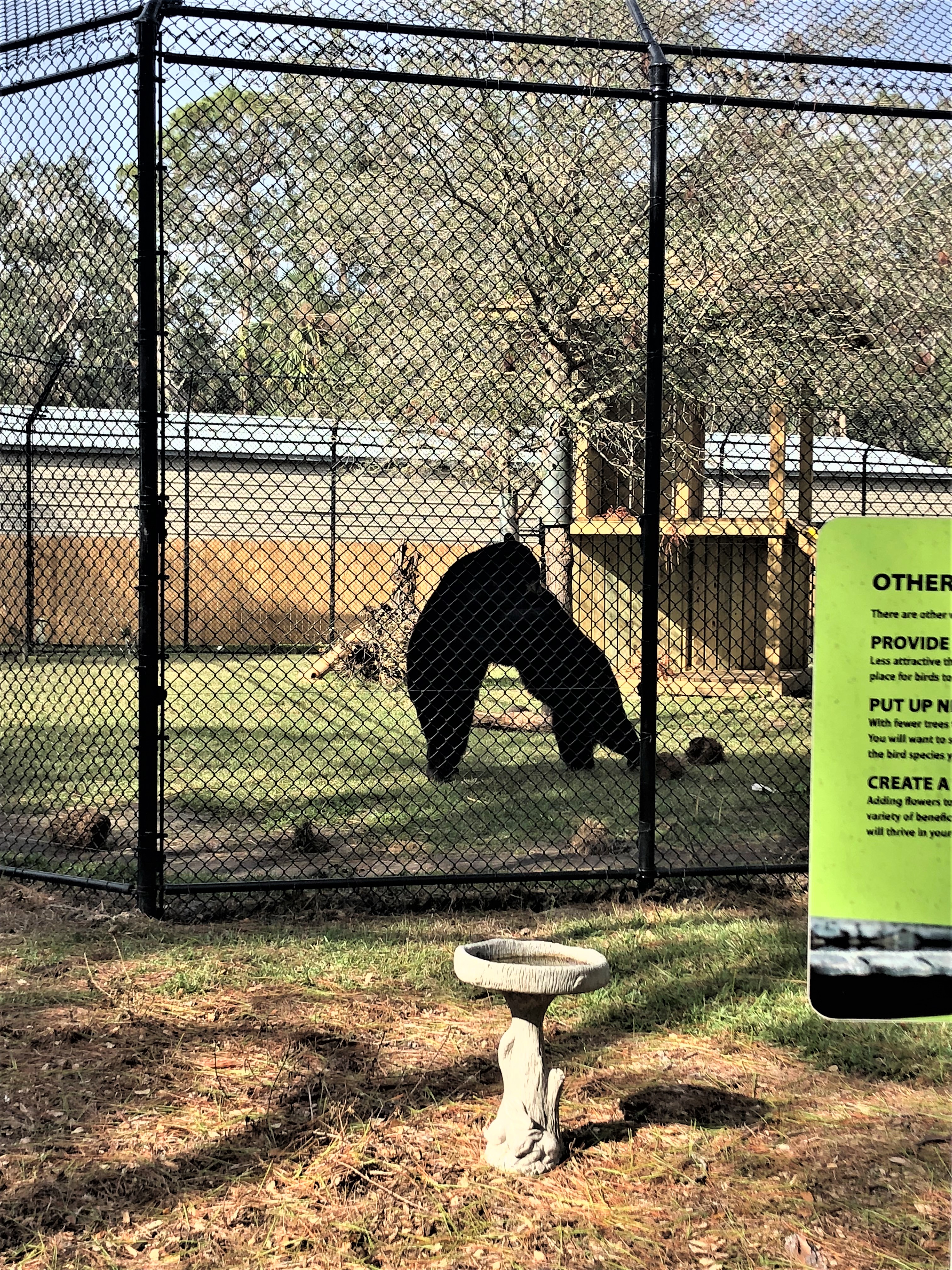 Once you purchase your tickets you make your way down a long path that takes you past the adventure section of the property. This section is where they have their zip line courses, obstacle courses, and some ground level activities. These activities are not included in your admission to the zoo. They are separate, and you can come and just do these courses. All along this path they have these neat boards that show one animal as you come and a different one as you go. As you walk you pass a building on you’re right that houses an insect display. They also host birthday parties and once a month they have activates for the community. My husband and I came once and made bat boxes for our yard at our previous house.