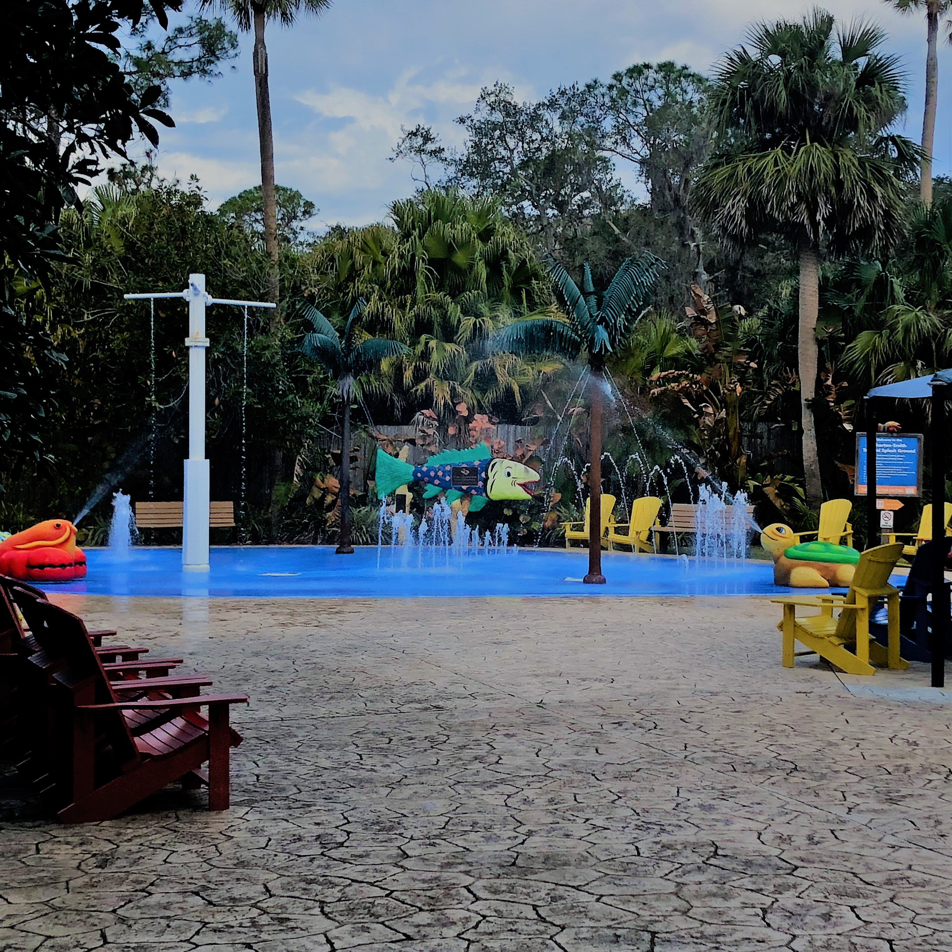 Once inside the first area you come too is the splash pad. It’s quite a nice area with covered seating. It was a little chilly on the day we went, but in the summer, I’m sure this area is filled with kids escaping the extreme heat we have here in Florida. I feel that it might be a little less crowded then other public splash pads since it’s inside and you either must have an annual pass or pay for daily admission.